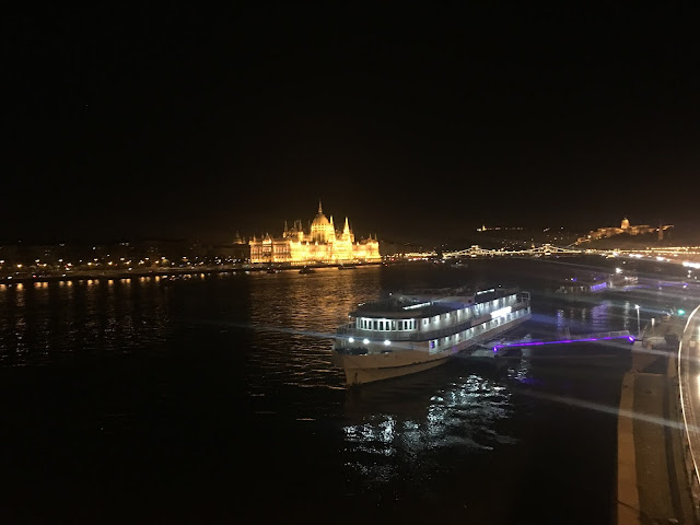 We decided to leave a little early whilst an unusual advertisement was being projected on a screen of water, heading back onto Margaret Bridge where we got our first proper view of Budapest by Night. The reflection of all the lights in the River Danube was so beautiful and the Hungarian Parliament looked breathtaking. We took in the views for as long as we could before heading back to our boat for a rest.